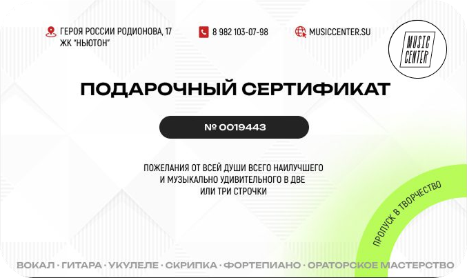 Возможность освоить уникальные инструменты – от аккордеона до гармоники, включая саксофон и мелодику. Сообщи о своих предпочтениях администратору и получи уникальный навык.